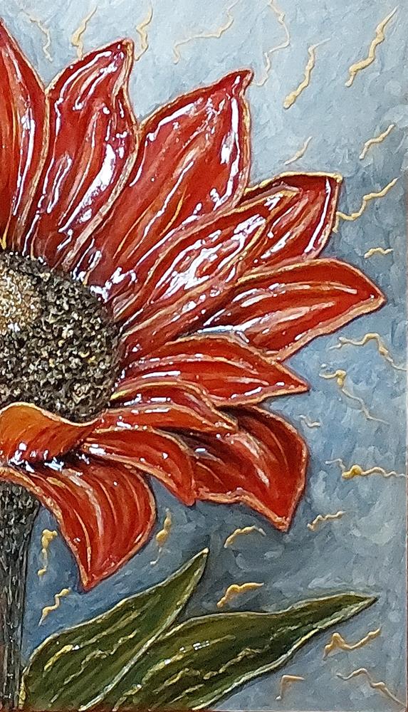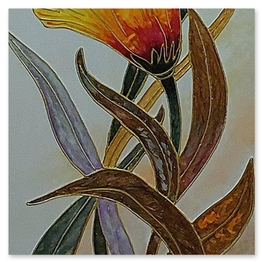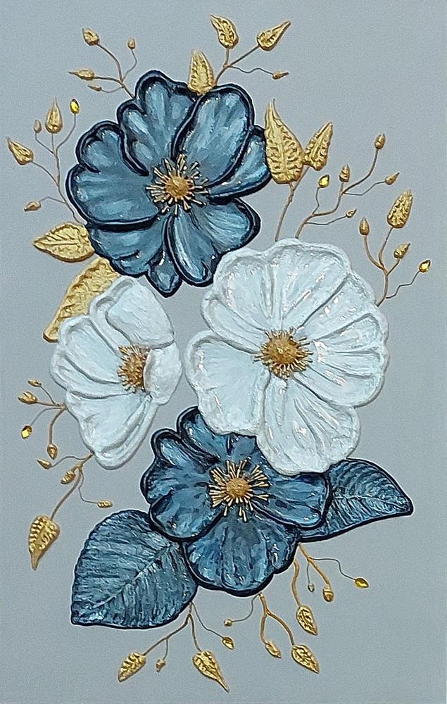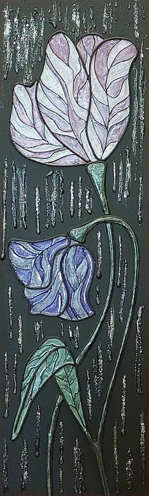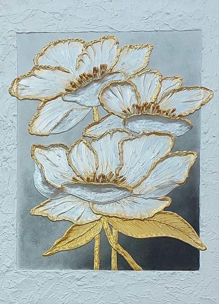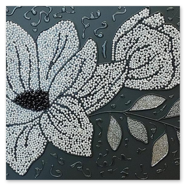 Il fiore, soggetto ricorrente del suo lavoro, non è mai rappresentato in chiave descrittiva, ma emerge come presenza essenziale, sospesa tra figurazione e astrazione.