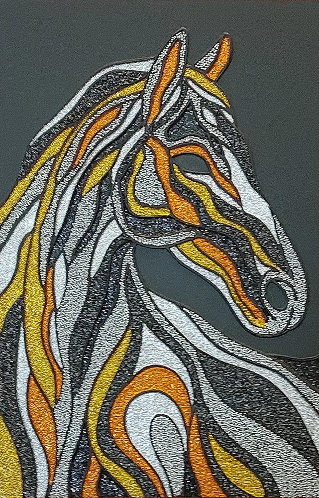 Elemento centrale della sua ricerca è la materia: superfici stratificate, rilievi e interventi metallici costruiscono un dialogo continuo con la luce, rendendo l’opera mutevole e percettivamente attiva.