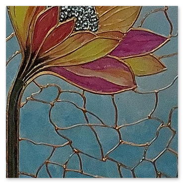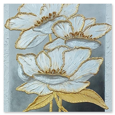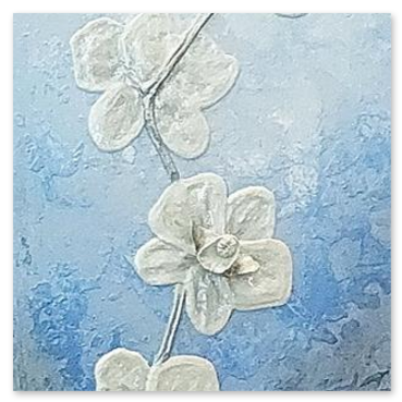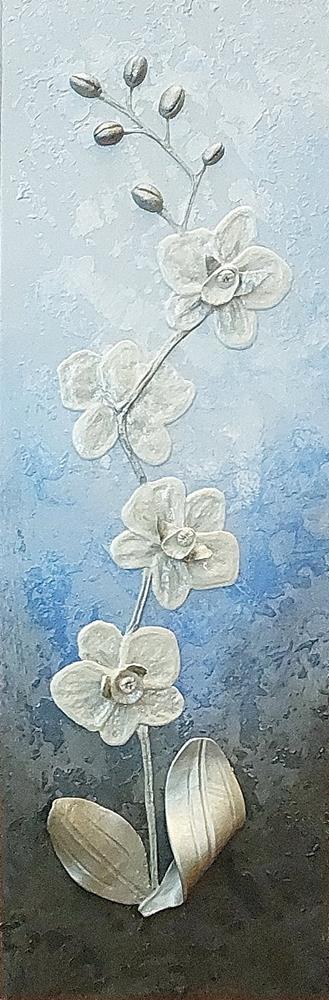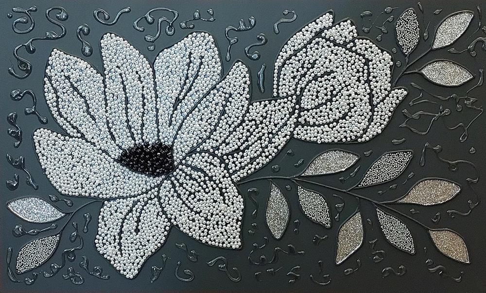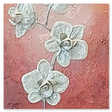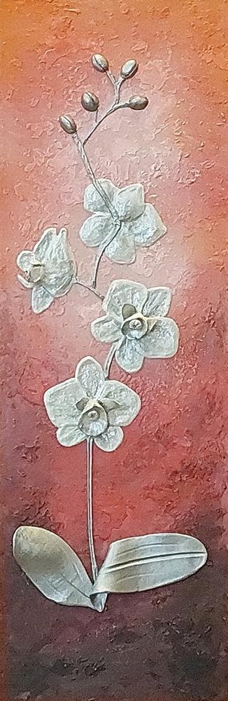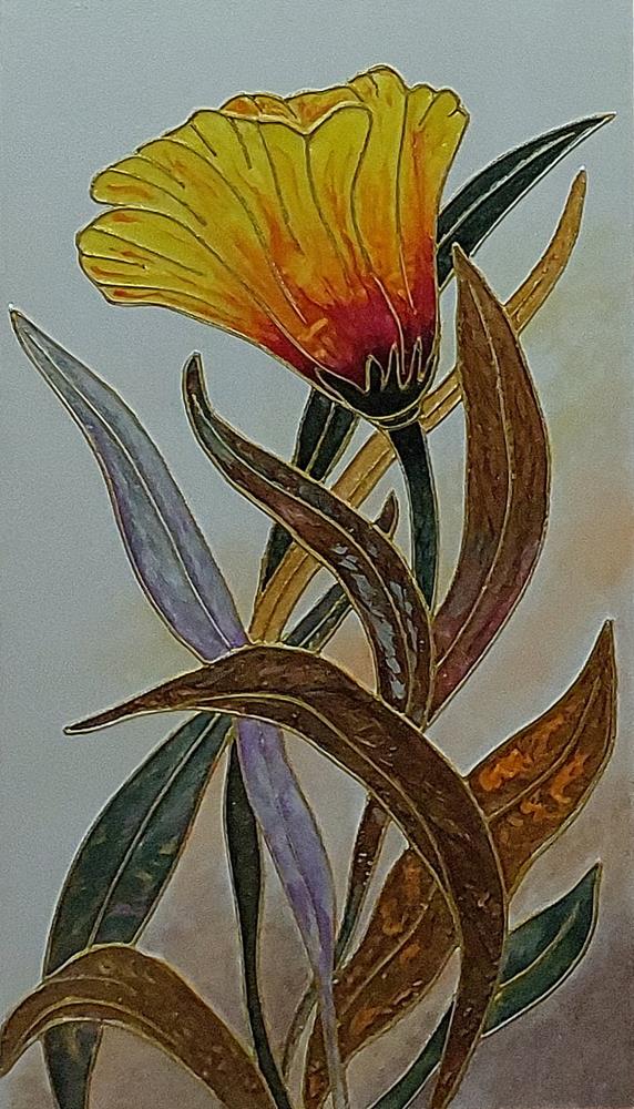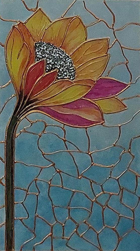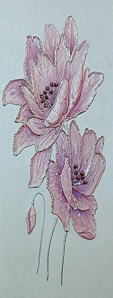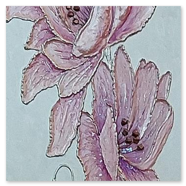 Il fiore, soggetto ricorrente del suo lavoro, non è mai rappresentato in chiave descrittiva, ma emerge come presenza essenziale, sospesa tra figurazione e astrazione.